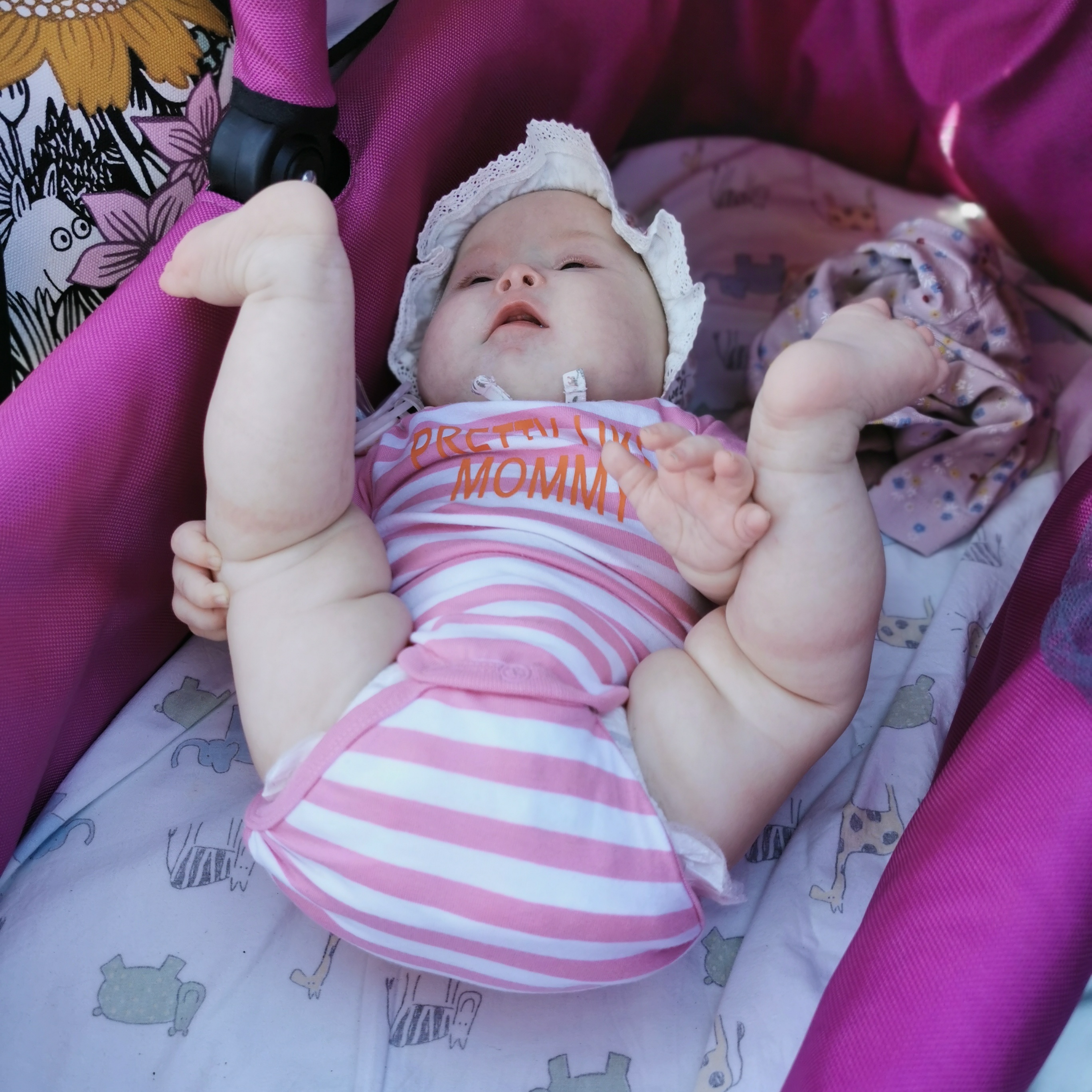 Meealla on ollut todella paljon mahakipuja ja varsinkin iltaisin on itkenyt noin neljä tuntia täyttä huutoa mahaansa. Toisena on ollut todella pahan hajuiset pierut ja välissä puklauttelikin jonkun verran. Kokeiltiin vaikka mitä masukipuihin; Cuplatonia, Bifibabya, gefilustippoja, masun silittelyä, jalkojen hierontaa, jalkajumppaa ja eri asentoja jos olisi helpompi olla ja ilma tulisi masusta pois. Mikään näistä ei kuitenkaan auttanut.